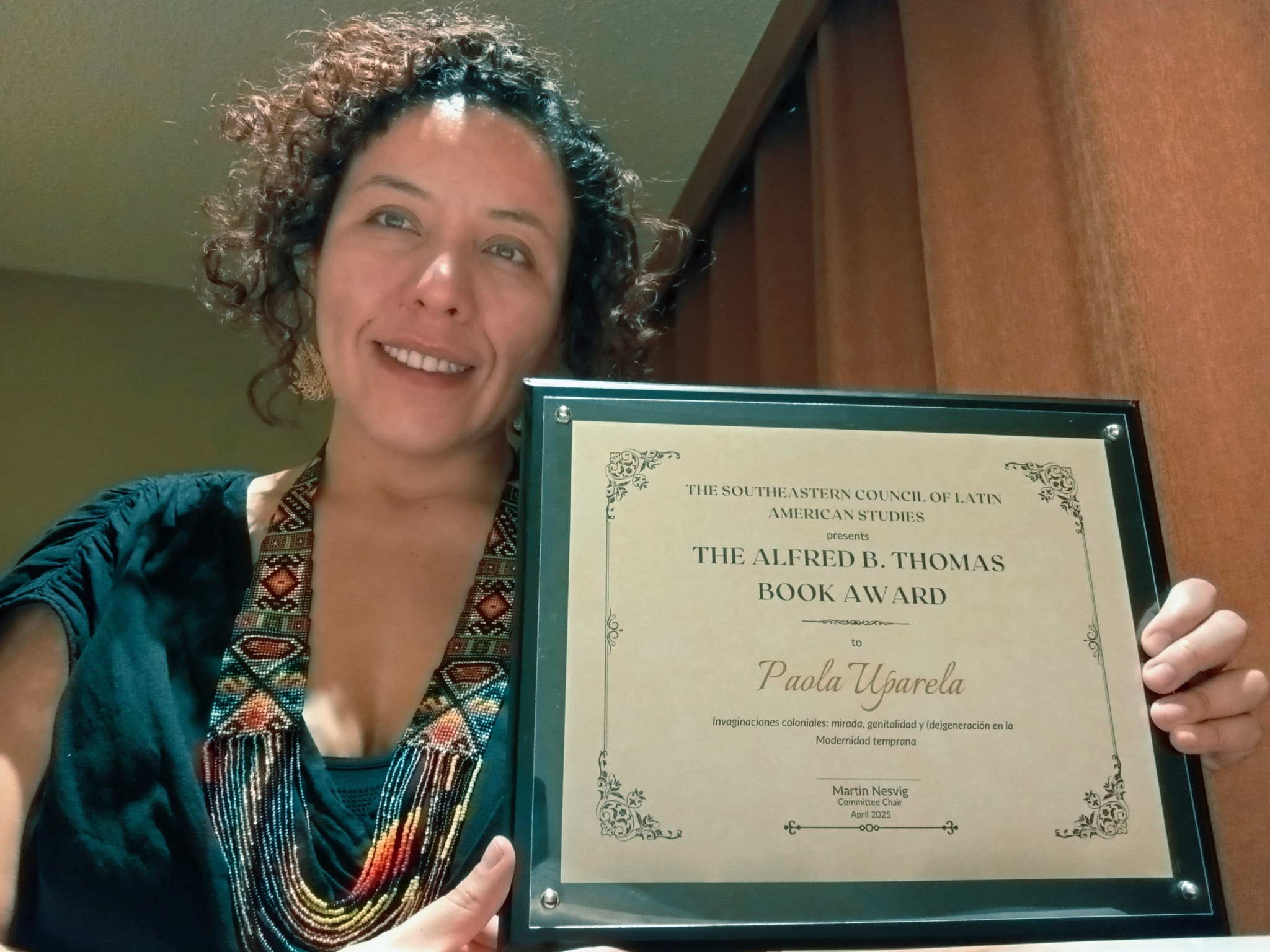 The Department of Spanish and Portuguese Studies is proud to announce the extraordinary success of Professor Paola Uparela’s first book, “Colonial Invaginations” (Iberoamericana Vervuert), which has garnered five international distinctions for its originality and impact: the Klaus D. Vervuert Hispanic Essay Award from Iberoamericana Vervuert and the Cervantes Institute (2023); the Alfred B. Thomas Book Award from SECOLAS (2025); the LASA Visual Culture Studies Book Prize (2025); the Victoria Urbano Critical Monograph Award from the Association of Gender and Sexualities Studies (2025); and an Honorable Mention for Best Women’s Issues Book at the International Latino Book Awards (2025).